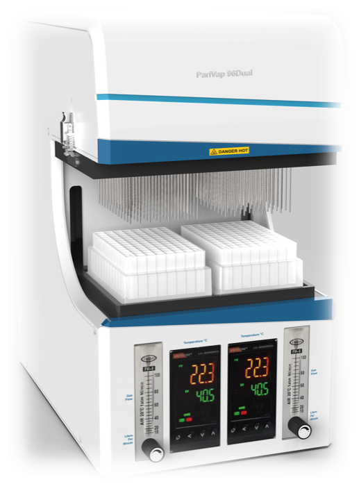 由于 96 孔板为聚乙烯材料制成,导热不好,无法加热均匀,导致吹干效率和一致性不佳,PariVap96双氮吹采浓缩仪用先进的氮气直接加热方式, 其效率远高于底板金属域加热方式, 同时加热均匀性高、一致性好。